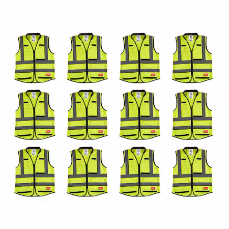 Chaleco de alta visibilidad, paquete de 12, S/M de Milwaukee Tool. Ideal para garantizar la seguridad en entornos laborales.