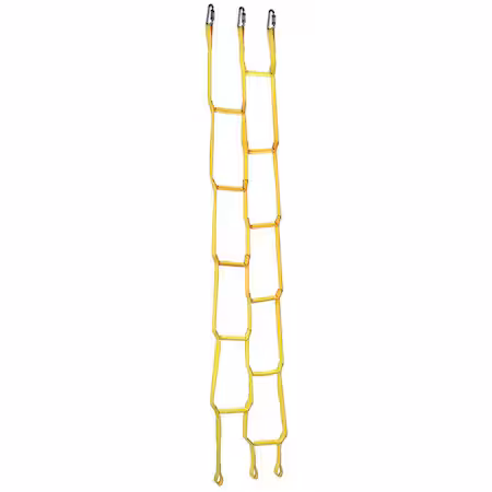 Escalera de rescate fabricada en poliéster, ideal para situaciones de emergencia. Incluye placa de montaje para una instalación segura y eficiente.