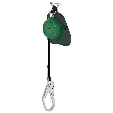 Línea de vida autorretráctil con limitador de caída personal de borde de ataque V-SHOCK EDGE, 10 pies de largo, fabricada en aluminio. Ideal para trabajos en altura y entornos industriales.