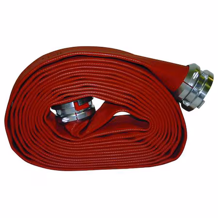 Manguera contra incendios de 100 pies de longitud, con un diámetro interior de 2 pulgadas. Fabricada con un tubo de caucho de nitrilo y PVC, en color rojo, ideal para situaciones de emergencia.