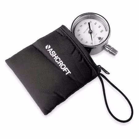 Manómetro de prueba ASHCROFT, rango de 0 a 1000 psi, con esfera de 3 pulgadas y conexión de 1/4 pulgadas NPT en la parte inferior.