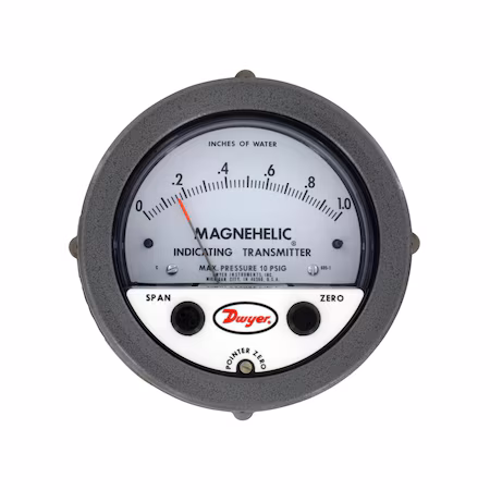 Transmisor indicador de presión diferencial con un rango de 0-1.5 kPa, ideal para aplicaciones de medición precisa en sistemas de HVAC y otros entornos industriales.