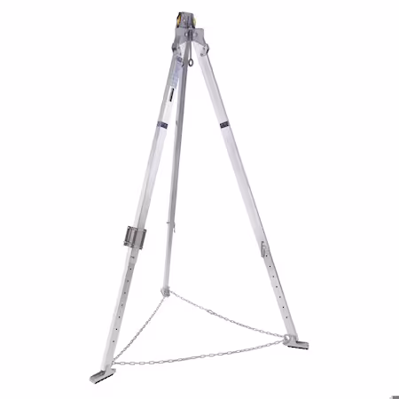Trípode para espacios confinados, plateado, 9 pies de alto. Ideal para garantizar la seguridad en trabajos en altura y espacios reducidos.
